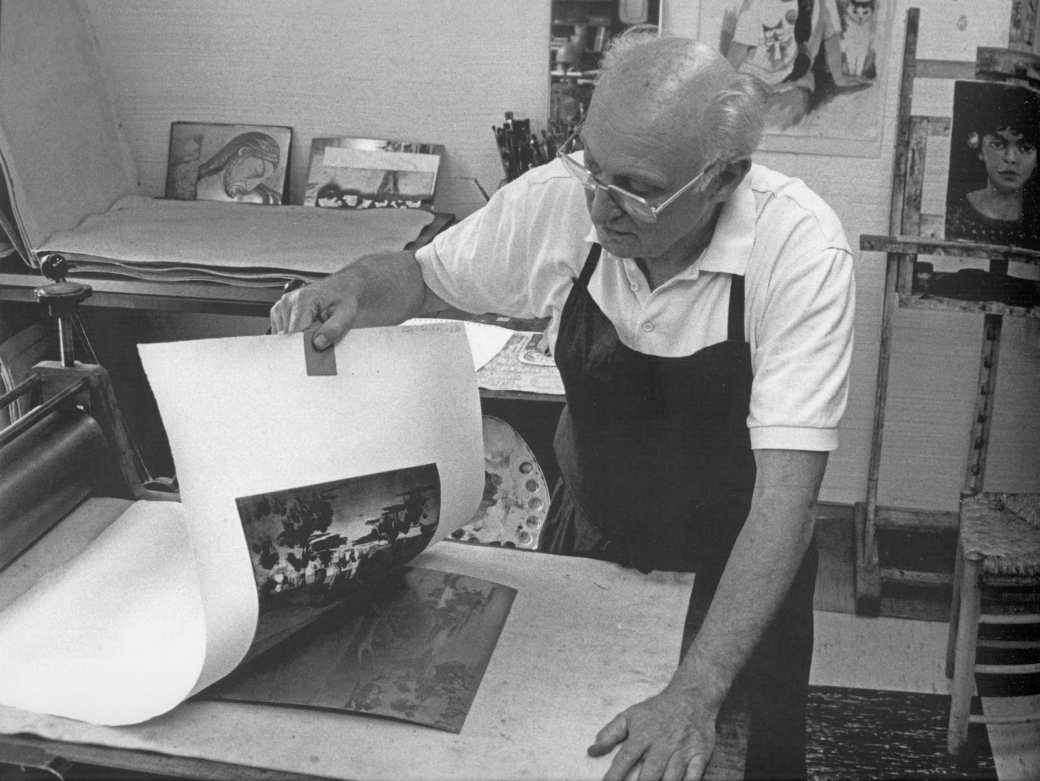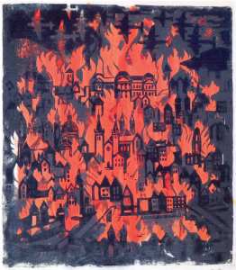 Gunter Ullrich, Würzburg brennt, Farblinolschnitt (1960)